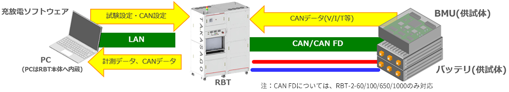 電装品など絡めた評価・試験を行うことができます。※CAN FDについては、 RBT-2-60/100/650/1000のみ対応