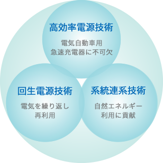 電源機器分野では、大電力電源ながら高電力効率な電源で、通信分野では、既存のアナログ回線の有効活用で、放送スタジオ分野では他社の追随を許さない高品質と長寿命で、お客様の要望を満足するソリューションを提供しつつ、低炭素社会の推進に貢献致します。