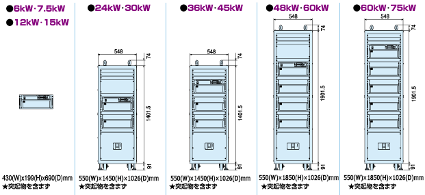 | 最大出力電力 | 6kW | 12kW | 24kW | 36kW | ||